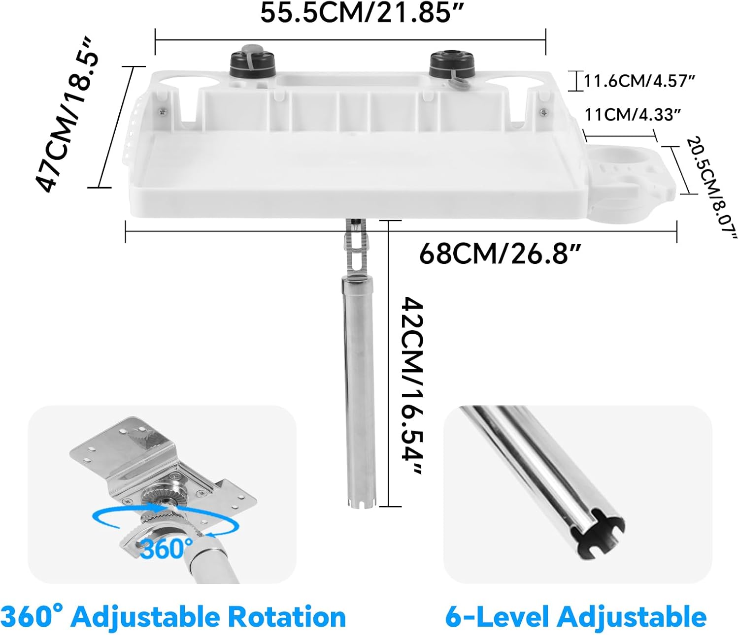 - Adjustable Angles: The direct insert tube allows for forward and backward tilt as well as 360° horizontal rotation, enabling you to easily adjust the cutting board to your preferred angle.The bait cutting board can be positioned at various angles, ensuring you work in the most comfortable and efficient stance.