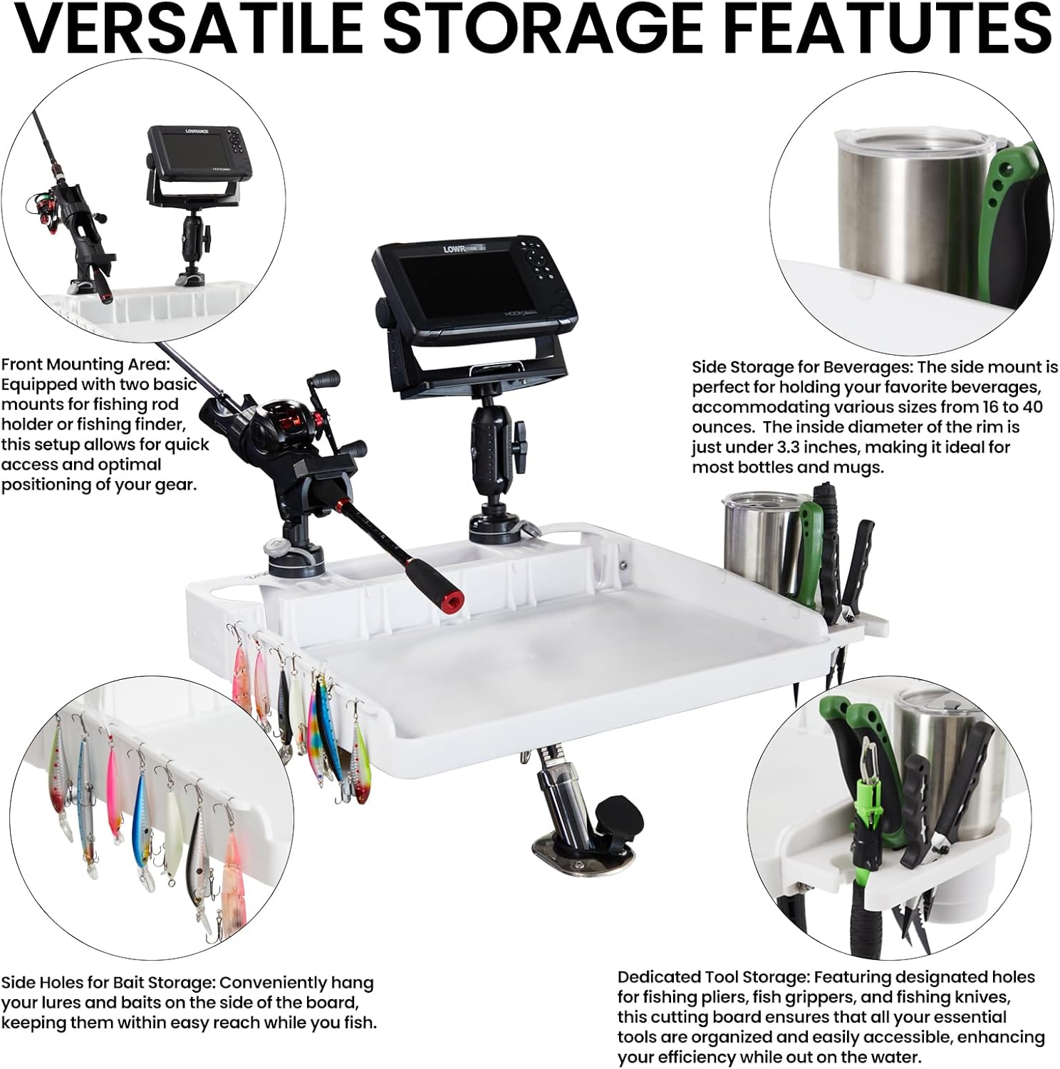 - Multi-Purpose Functionality: More than just a fish processing station, our boat fishing cutting board doubles as a convenient workspace for preparing bait while out on the water.It also functions as a fish cleaning station, bait prep board, food serving tray, drink bar, grilling platform, and more. An essential accessory for any boating adventure!